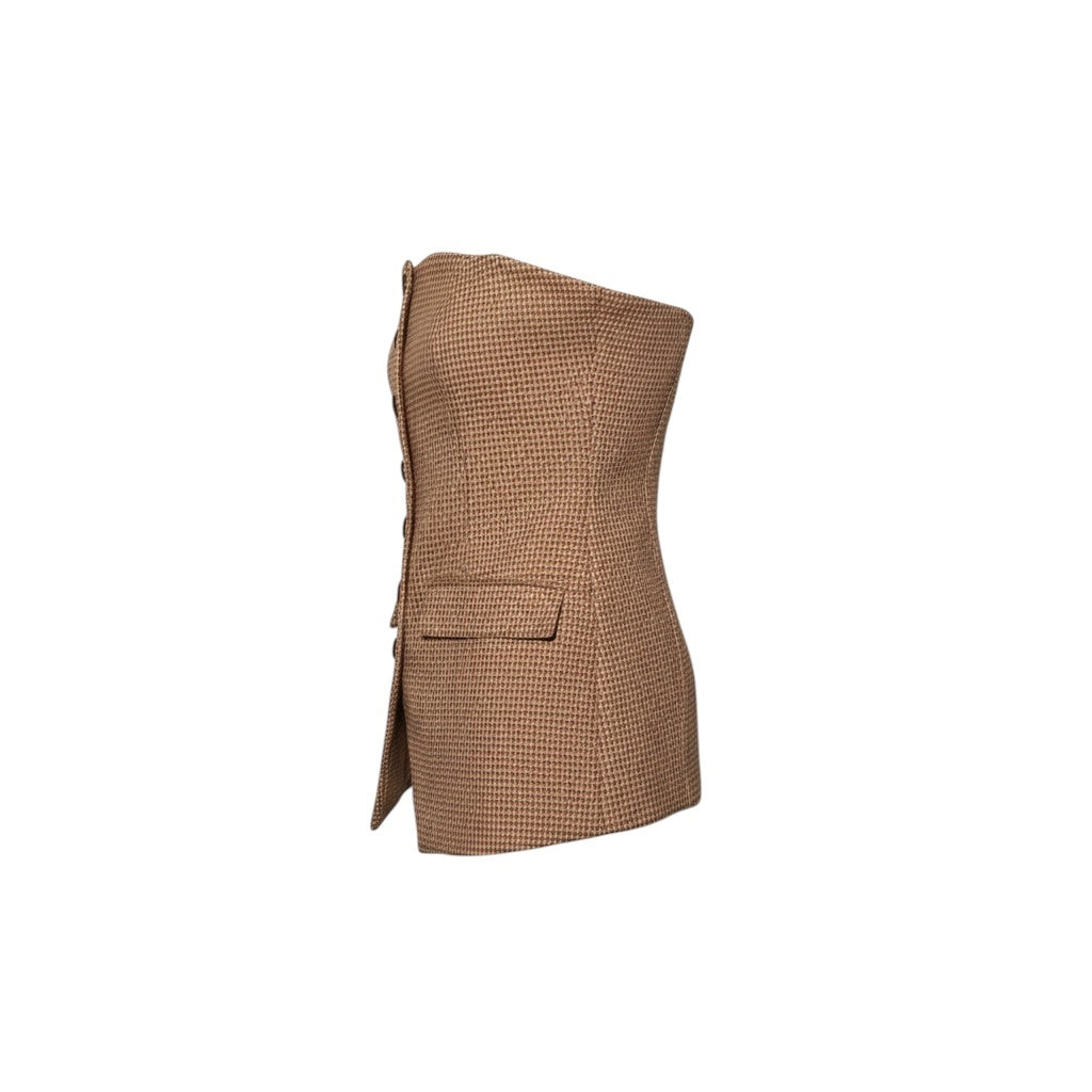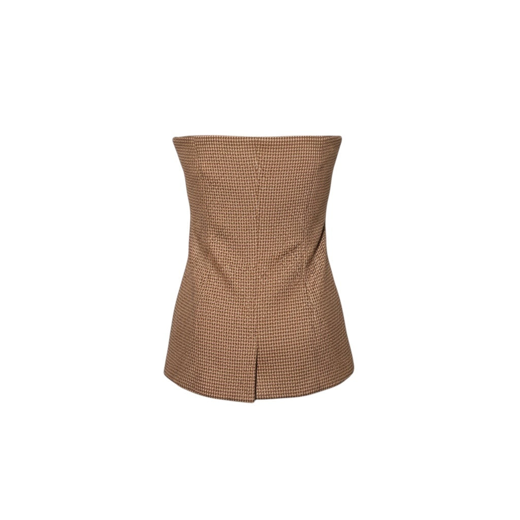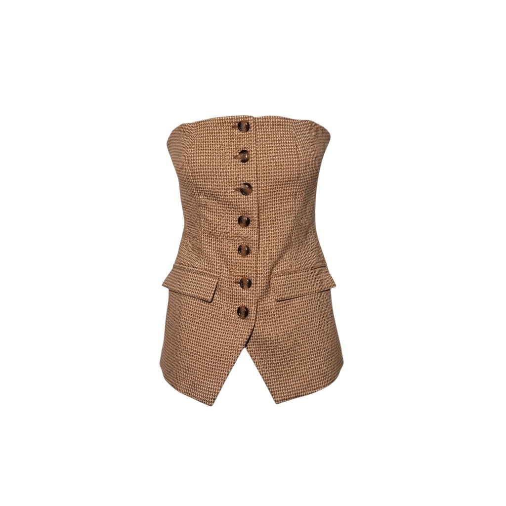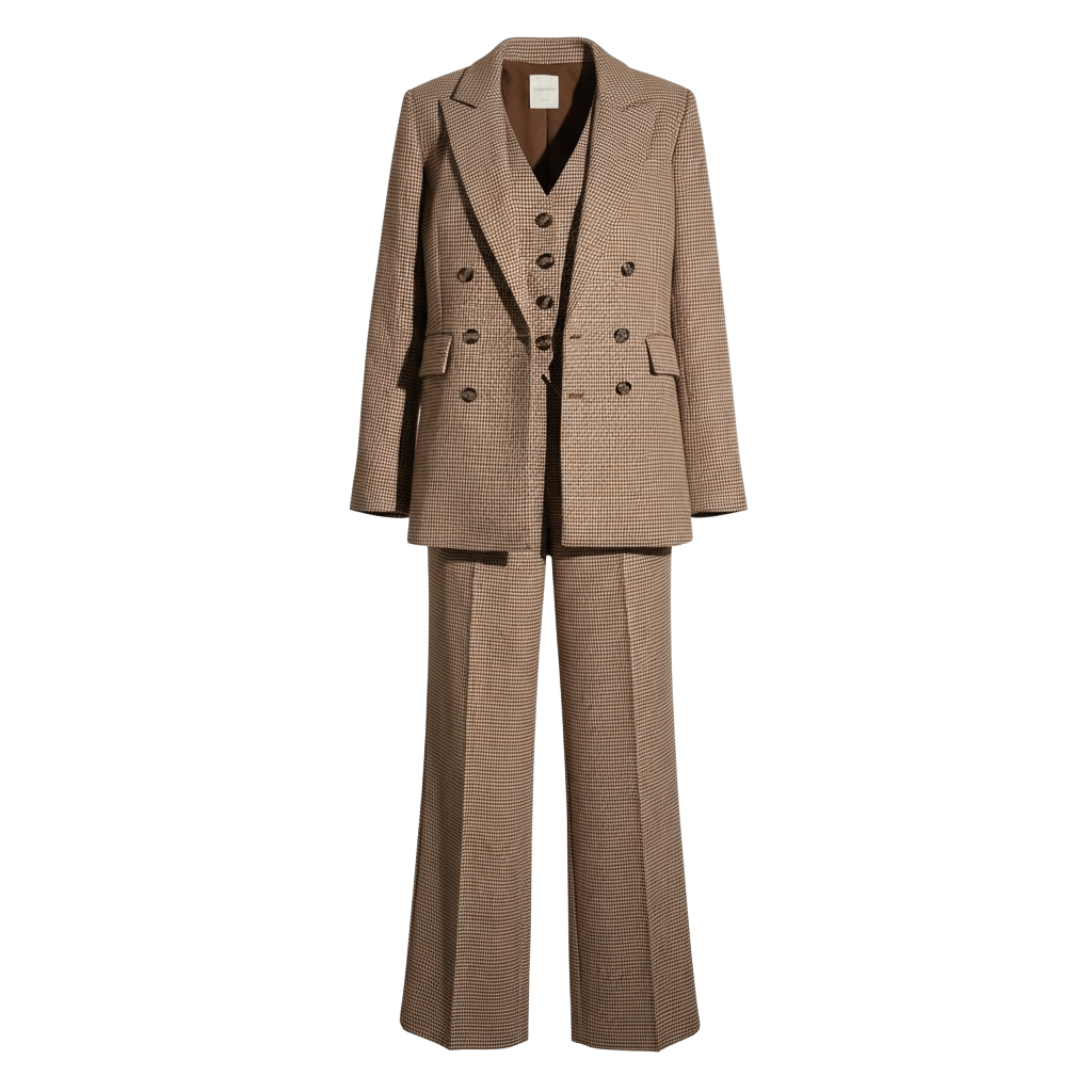 This blazer features a classic houndstooth in brown tones. Sold as a set or separately.