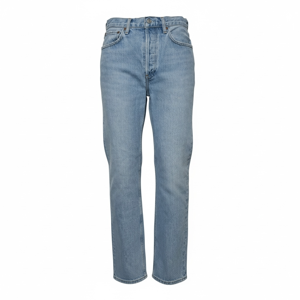 Classic light blue denim jeans with a straight-leg fit.