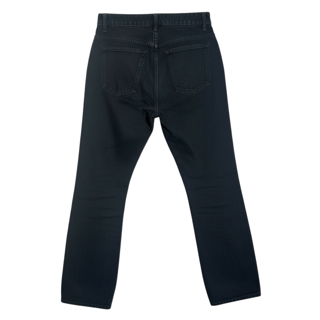 Classic black denim jeans with a straight-leg fit.