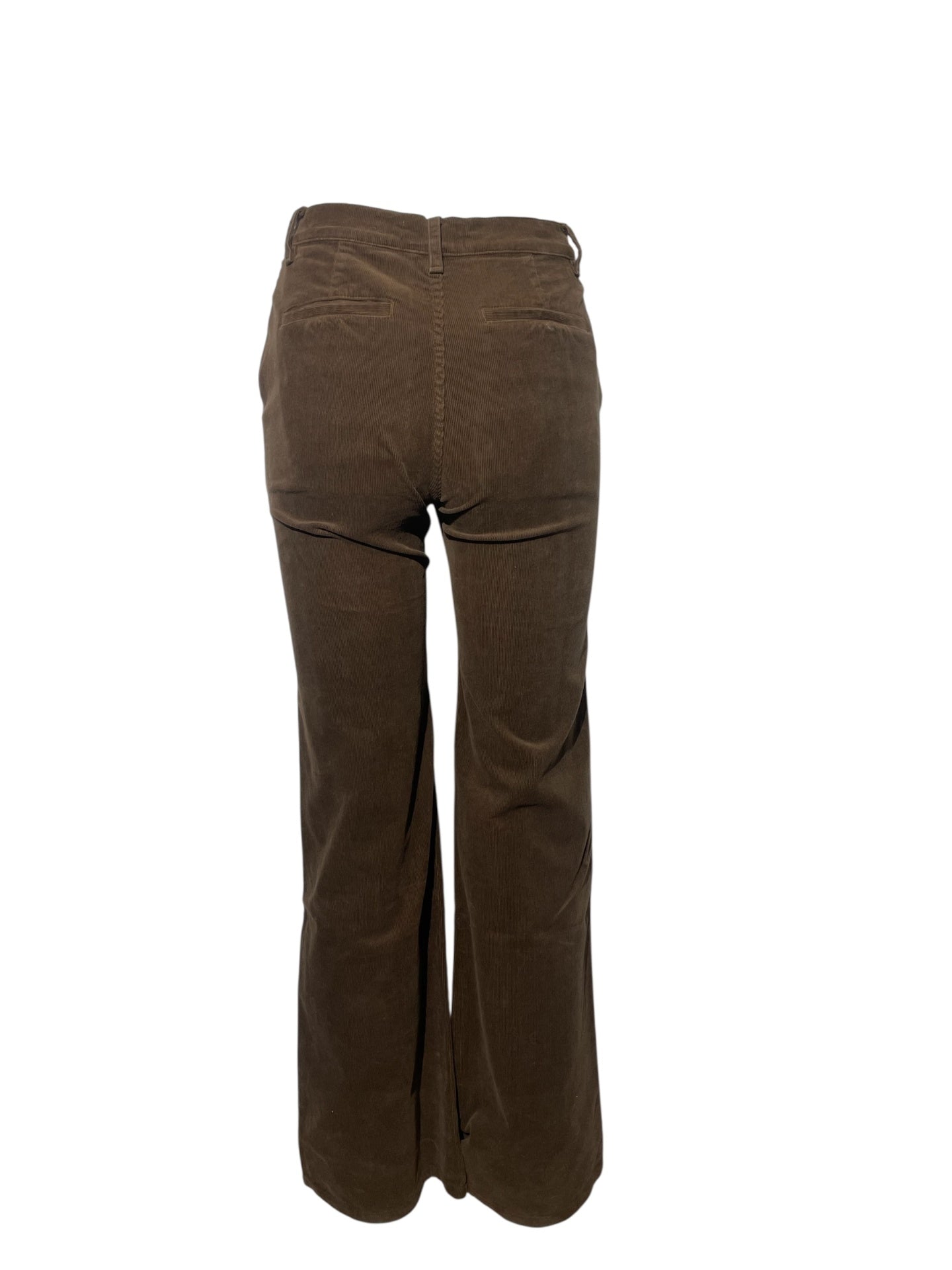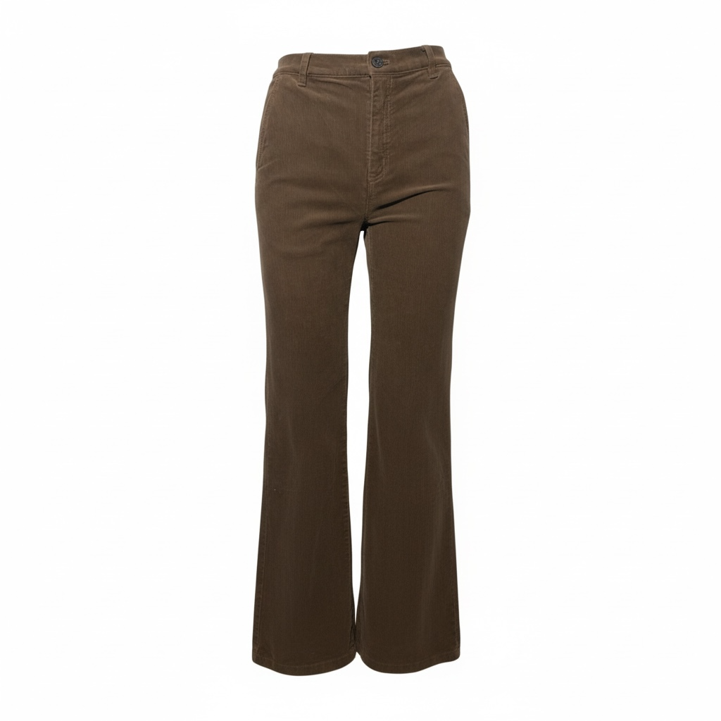 These brown jeans offer a classic fit with a slight flare at the bottom.